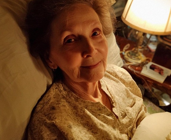 With a woman who looked exactly like my grandmother when she was young.